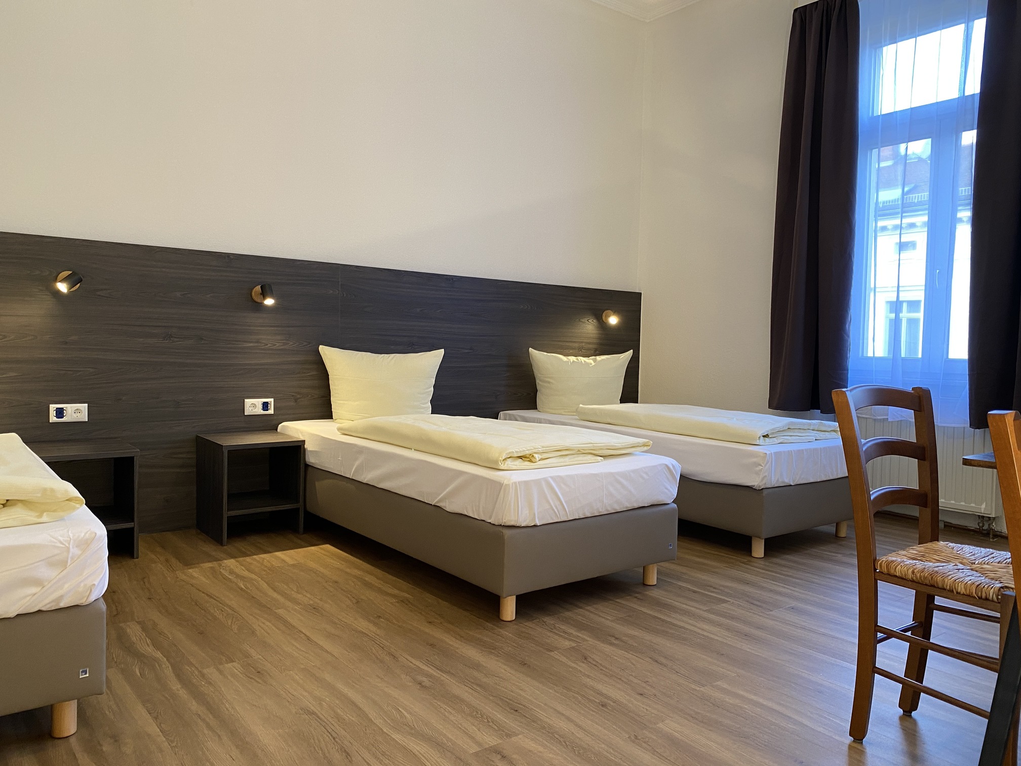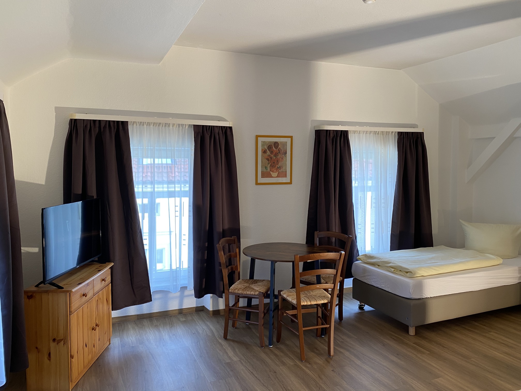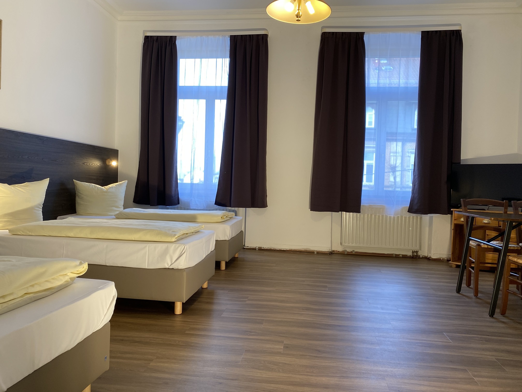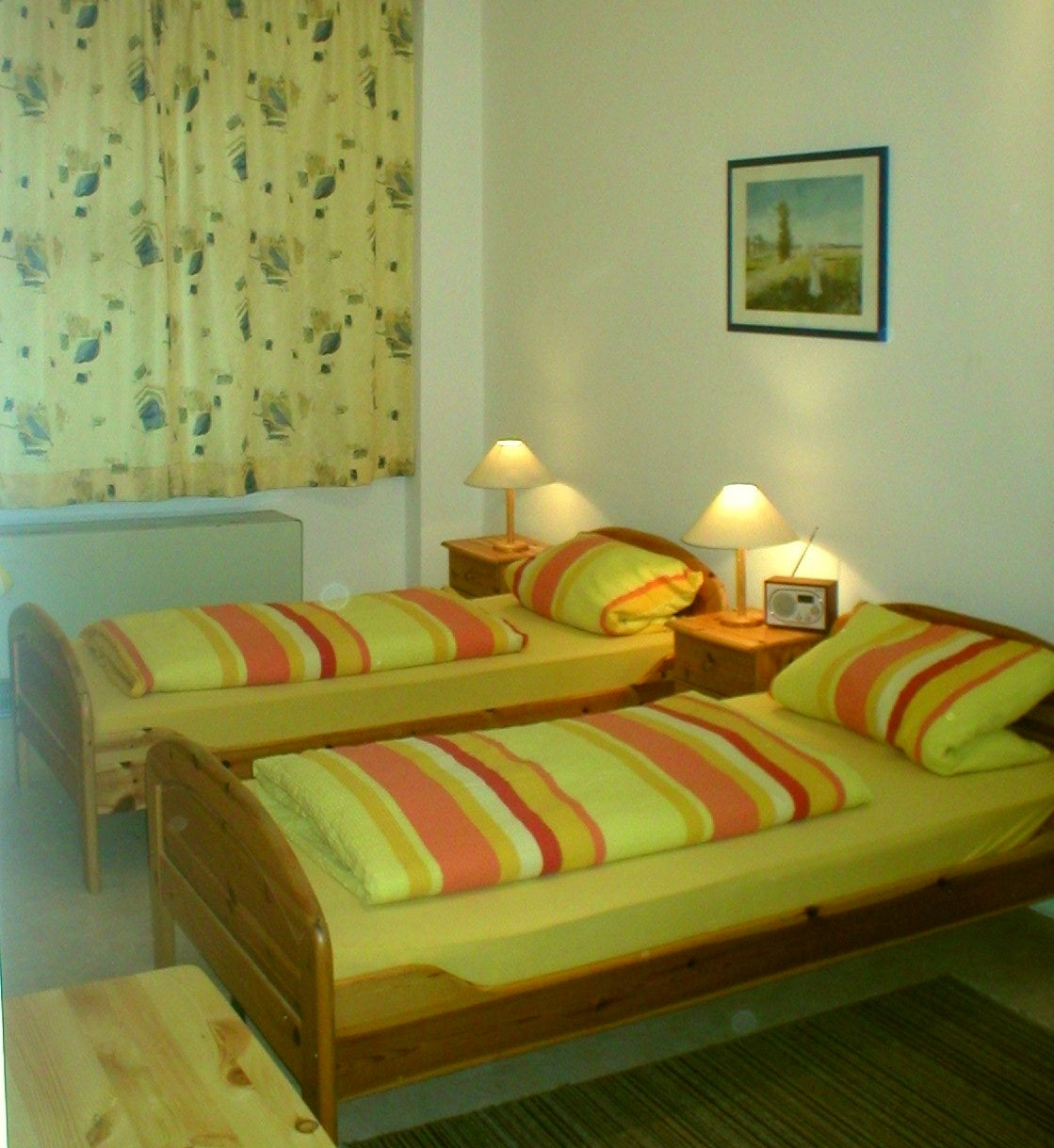 Das 3‑Zimmer Appartement unterteilt sich in drei Wohn- bzw. Schlafräume mit 2 Doppel und einem Dreibett, verfügt über 2 Badezimmer mit Dusche und einer Wohnküche.